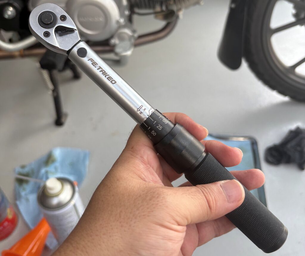 8mmボルトの締め込みトルクは10N・mです。ここでもトルクレンチを使用します。