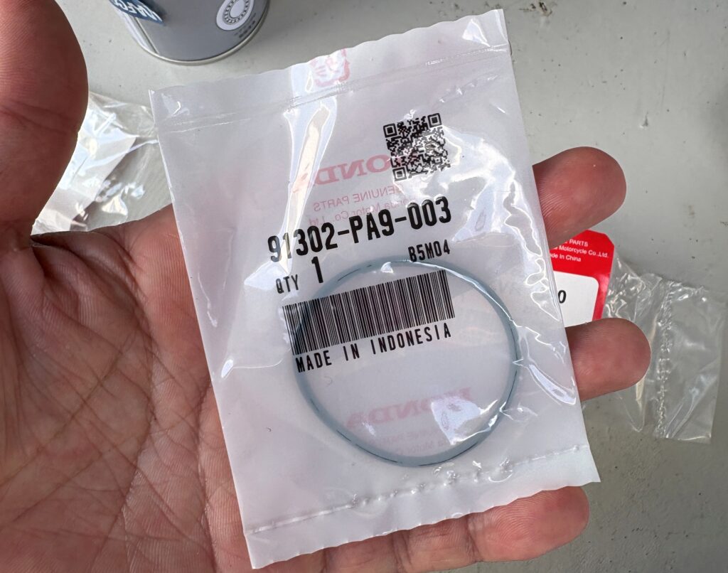 また、フィルターカバーについているOリングは消耗品なので、新しいOリング(91302-PA9-003/Oリング 39.8×2.2)に交換します。