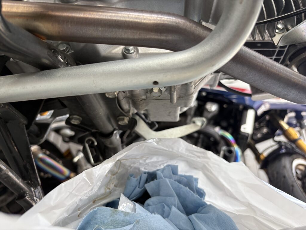 ここからも古いオイルが排出されますので、廃液ボックスはドレンボルト下とフィルター下の両方のオイルを拾えるように配置しておきましょう。