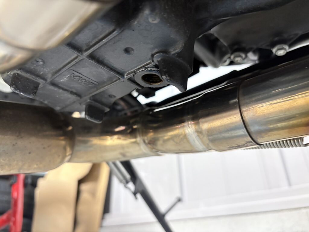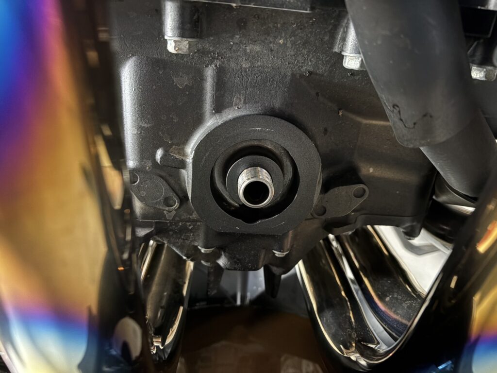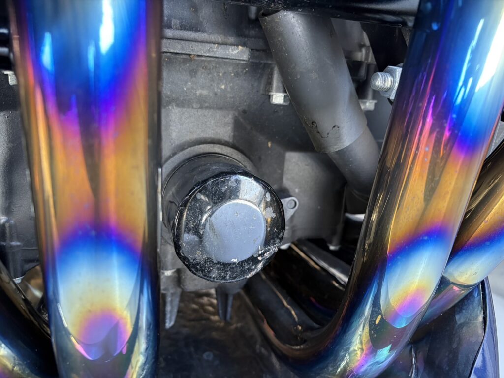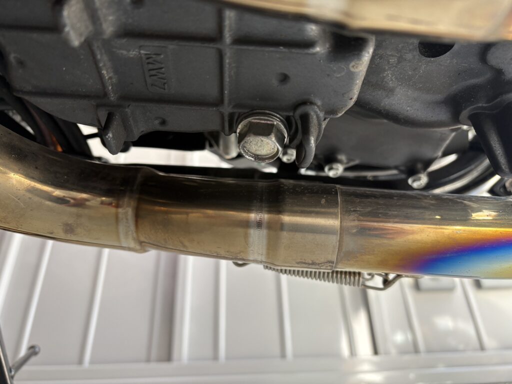ここからも古いオイルが排出されますので、廃液ボックスはドレンボルト下とフィルター下の両方のオイルを拾えるように配置しておきましょう。