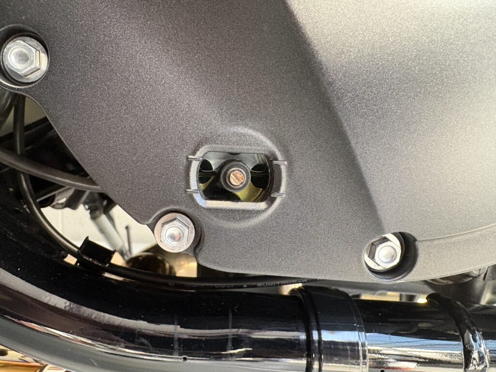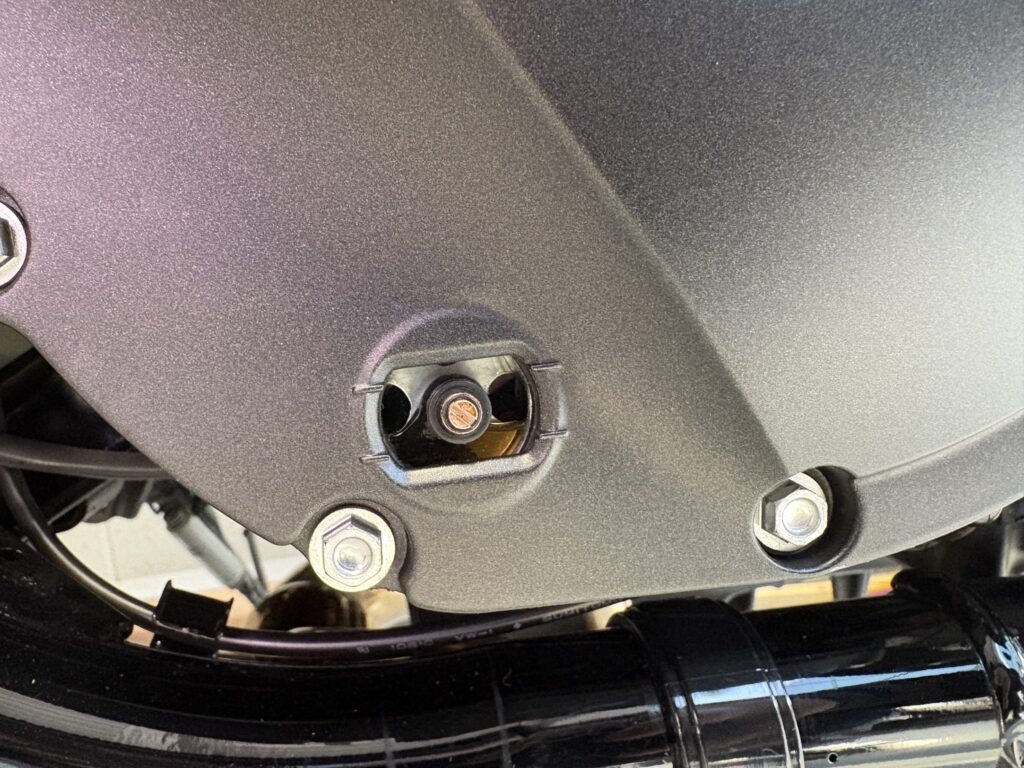 クロスカブのオイル投入口は天面を向いており、どんなオイル漏斗でも作業はしやすいと思います。