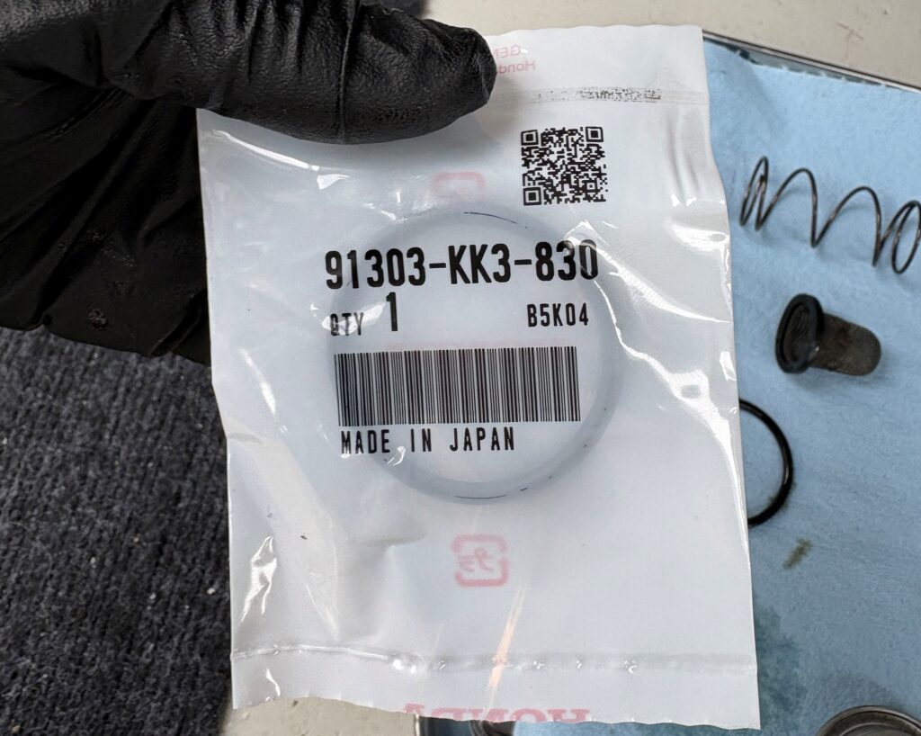 また、ドレンキャップについているOリングは消耗品なので、新しいOリング(91303-KK3-830/Oリング 35X3)に交換します。
